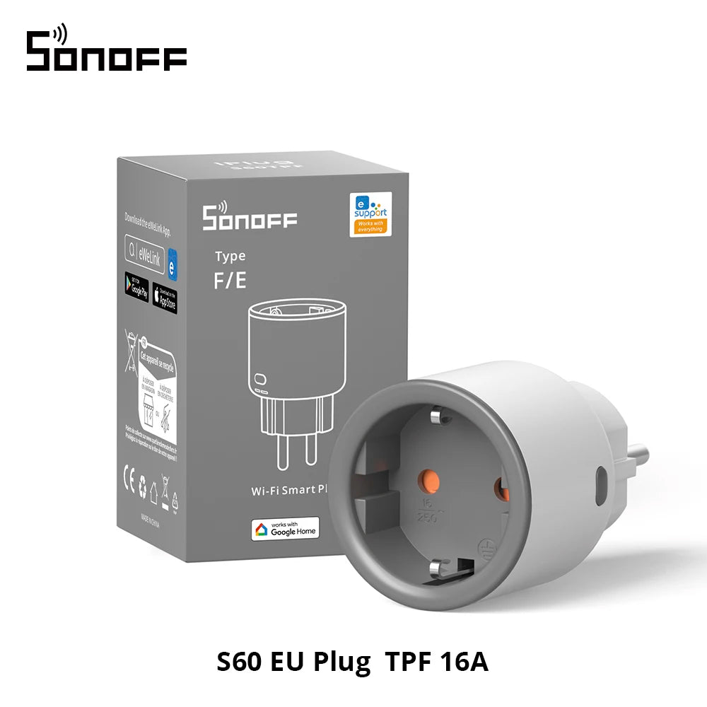 1-4 PCS SONOFF S60 EU 16A iPlug Wi-Fi Smart Socket Overload Protection Smart Scene Remote Control via eWeLink Alexa Google IFTTT