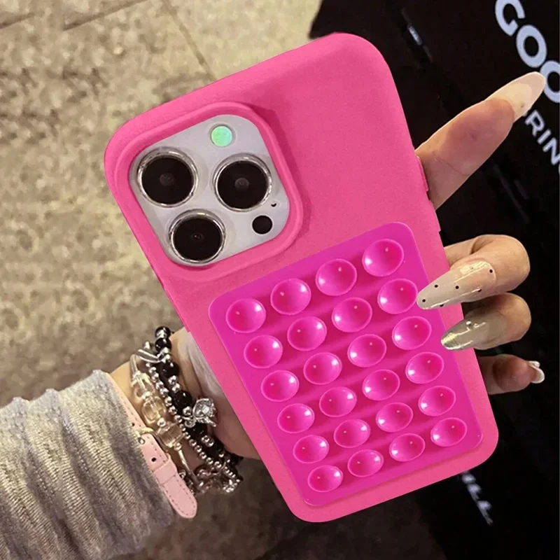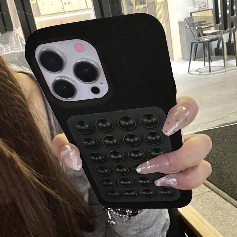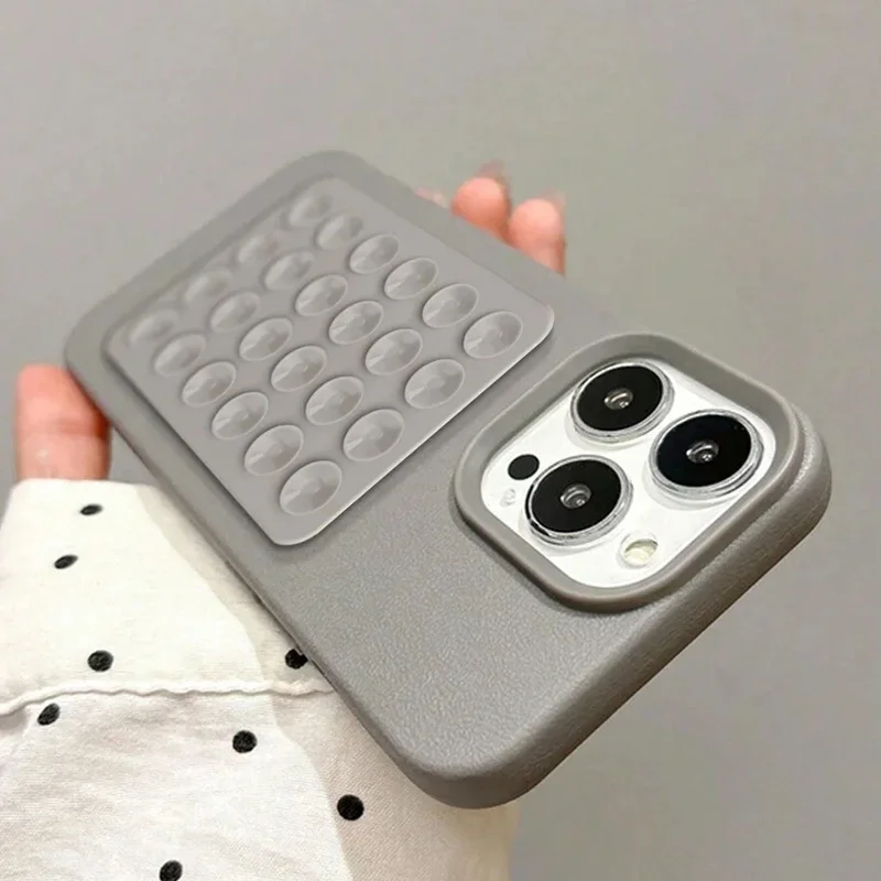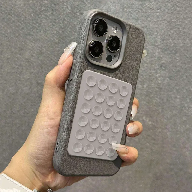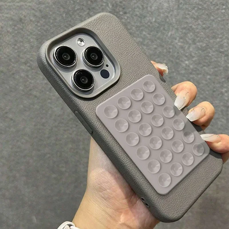 3D Suction Cup Stand Litchi Pattern Phone Case For iPhone 16 15 Pro Max Plus 14 13 12 11 Pro Max X XS XR Shockproof Cover