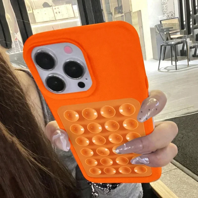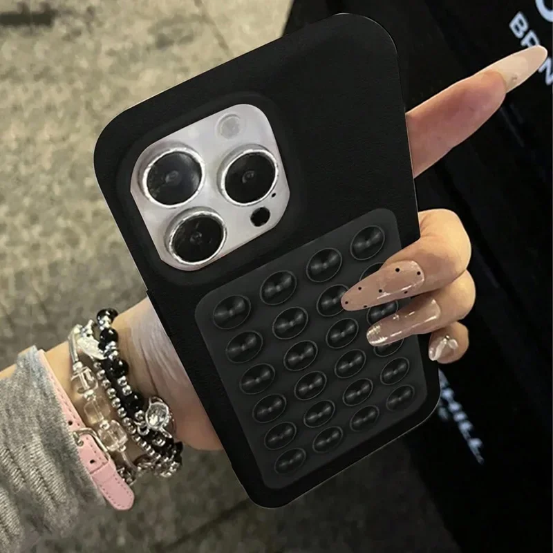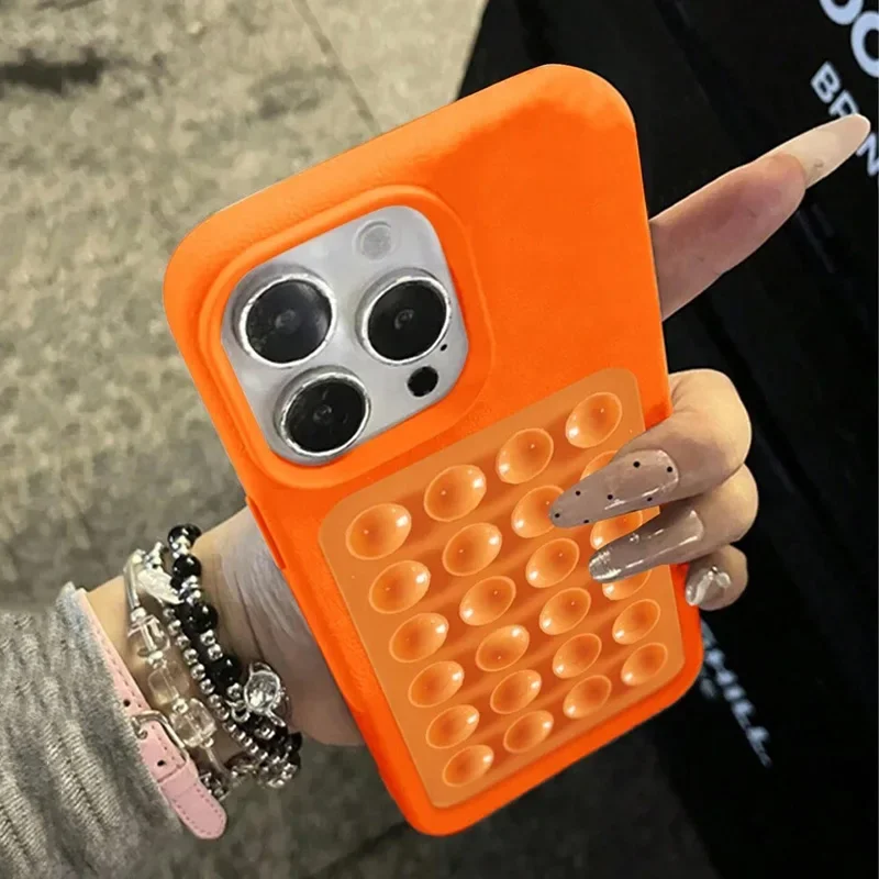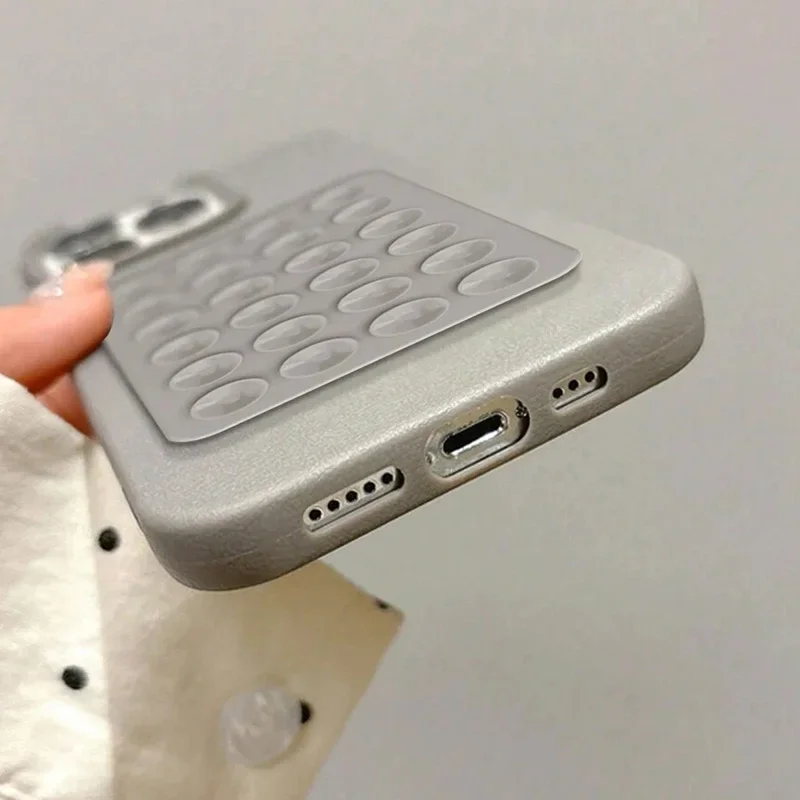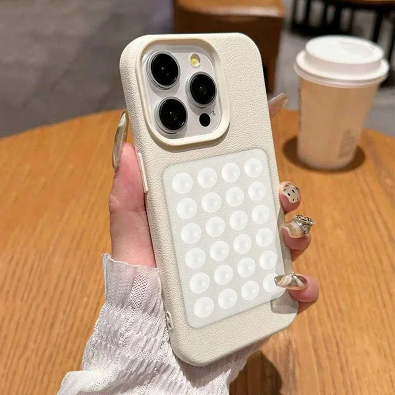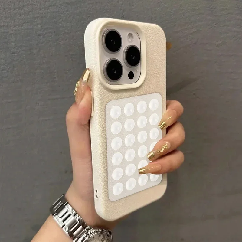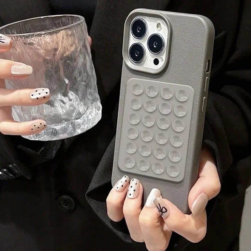 Étui pour iphone avec ventouse 3D et motif litchi